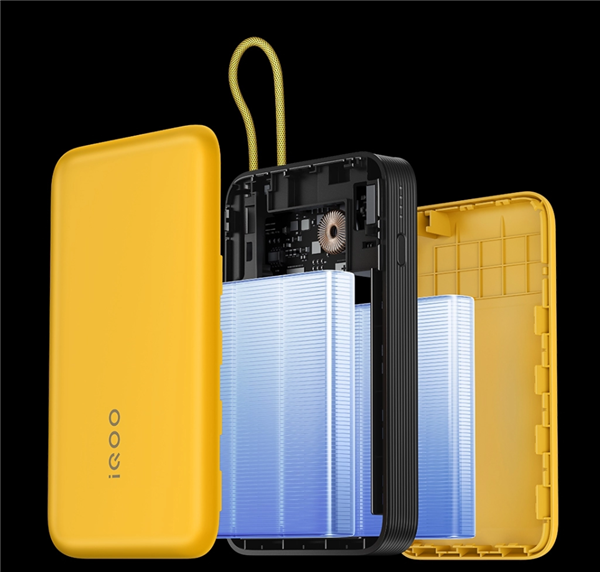 其他方面,iQOO自帶線充電寶配備了25cm編織快充線,擁有黃、黑兩種配色,還有著卡扣環(huán)設(shè)計(jì),支持FlashCharge、PD3.0、PPS、QC2.0等快充協(xié)議,可同時(shí)為3臺(tái)設(shè)備充電。